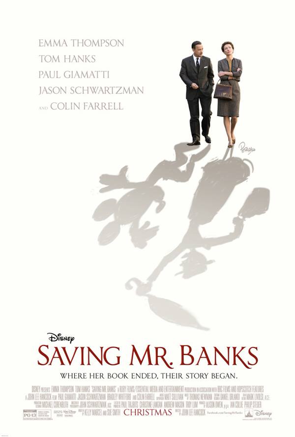 Plus récemment encore sortait au cinéma Dans l’ombre de Mary, réalisé par John Lee Hancock (2013). Cette fois, c’est l’histoire de Pamela Travers qui est racontée, et comment elle fit vivre un véritable enfer à Walt Disney et son équipe de scénaristes quand ils tentèrent d’adapter son roman au cinéma. Cette drôle d’australienne devenue plus qu’anglaise débarque à Los Angeles vingt ans après les premières demandes (supplications ?) de Walt Disney pour racheter les droits du livre, et elle trouve à redire à tout (et bien sûr le fait savoir, pas toujours diplomatiquement). On découvre d’où vient Mary Poppins, et c’est bien sûr de son enfance en Australie, auprès d’un père qu’elle aimait tant. Mais les histoires vraies ne se passent pas toujours bien… Pendant l’écriture du scénario, Pamela Travers revisite les origines de son personnage et ne transige sur rien. Le titre anglais de ce film, Saving Mr Banks (Sauvons M. Banks) donne une autre teinte à l’histoire, et on comprend au fur et à mesure qu’il s’agit peut-être bien moins des enfants qu’on ne le pense. Joli et drôle, Pamela Travers mérite bien de voler la vedette à Mary Poppins le temps d’un film.